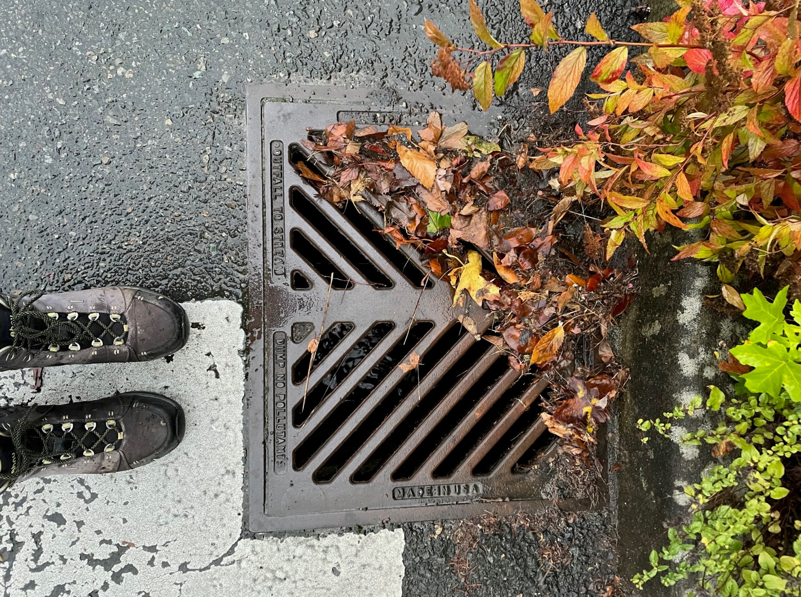 With the onset of rain, chilly weather and wind, autumn leaves begin to fall on our yards and our streets. Storm drains can easily be overwhelmed with leaves, fir needles and sediment-laden stormwater runoff. When debris like this builds up on storm drain grates, rainwater has trouble passing through to the pipes below.