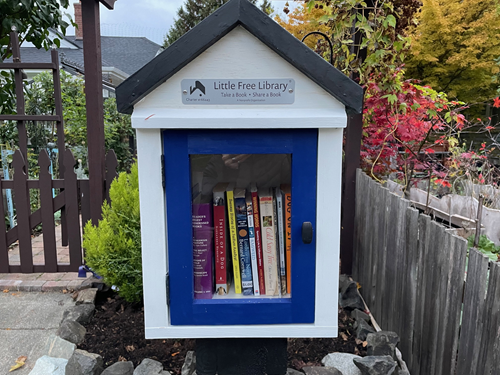On my walks, I’m always curious to see what people put out on the curb for others to take. I also like to check out the little free libraries and leave copies of my favorite books for others to read. Most contain books, but some share other items.