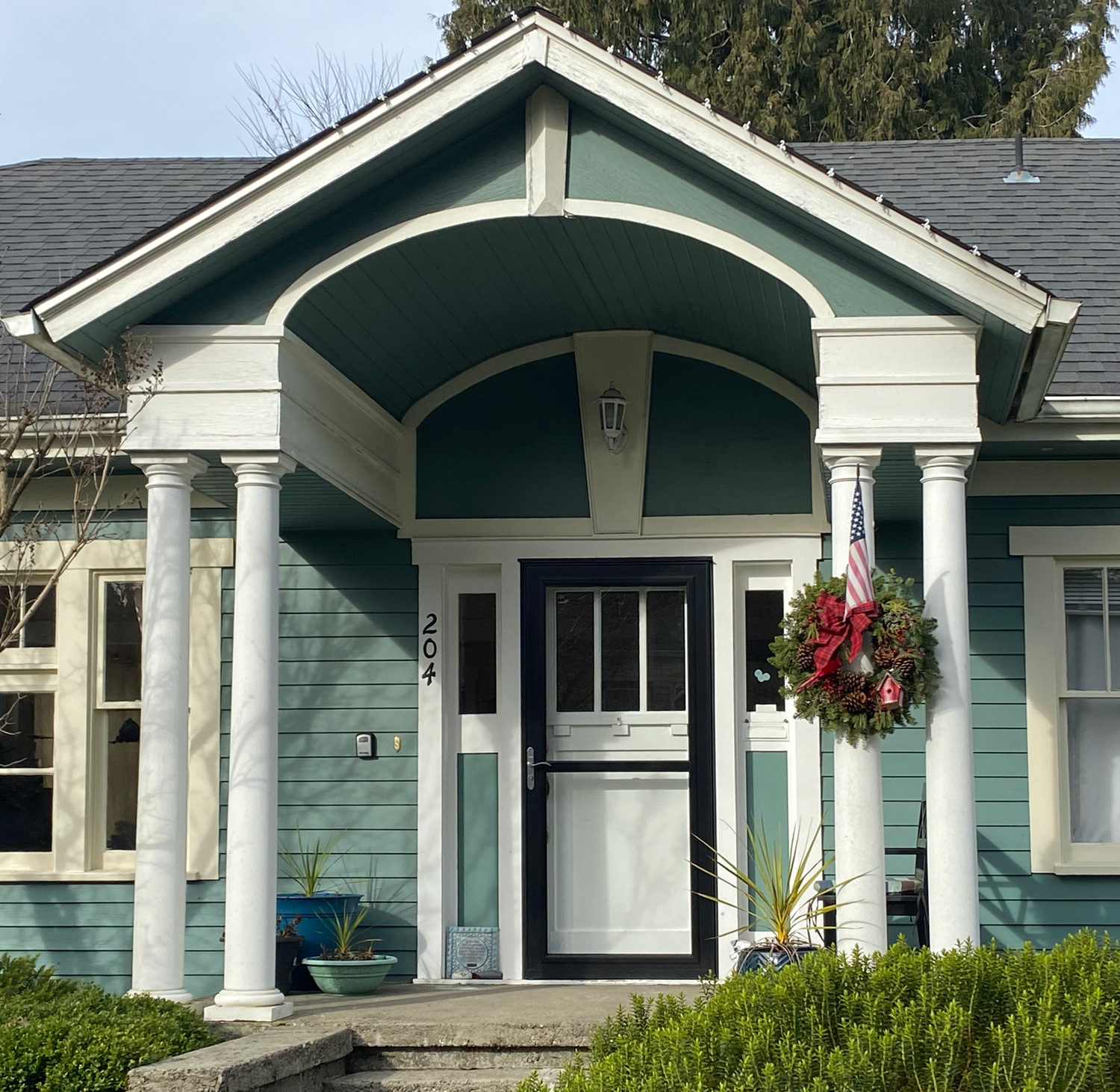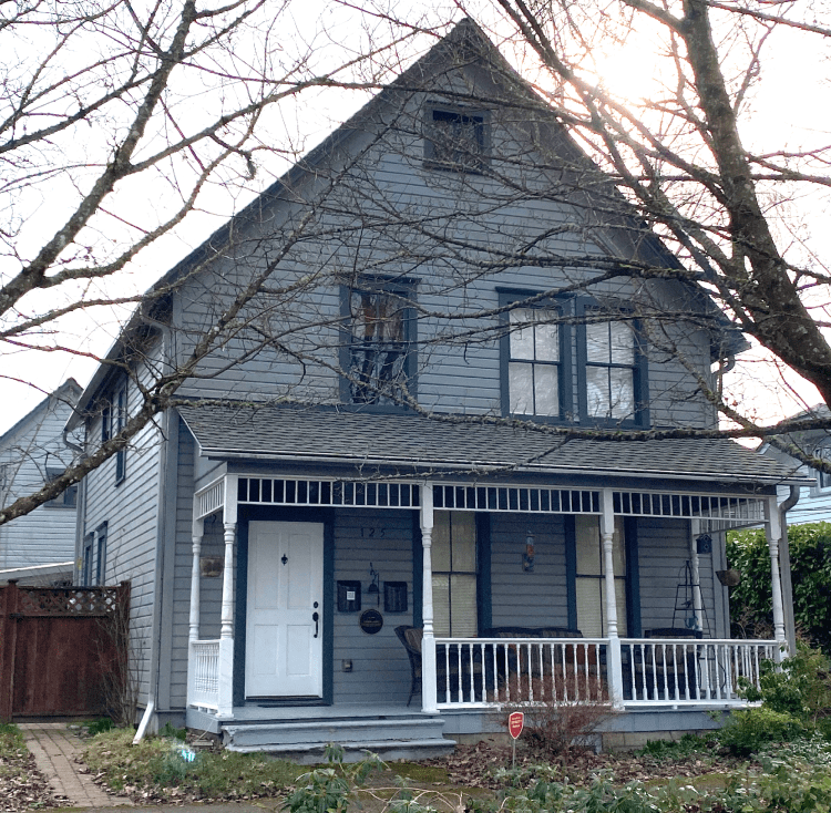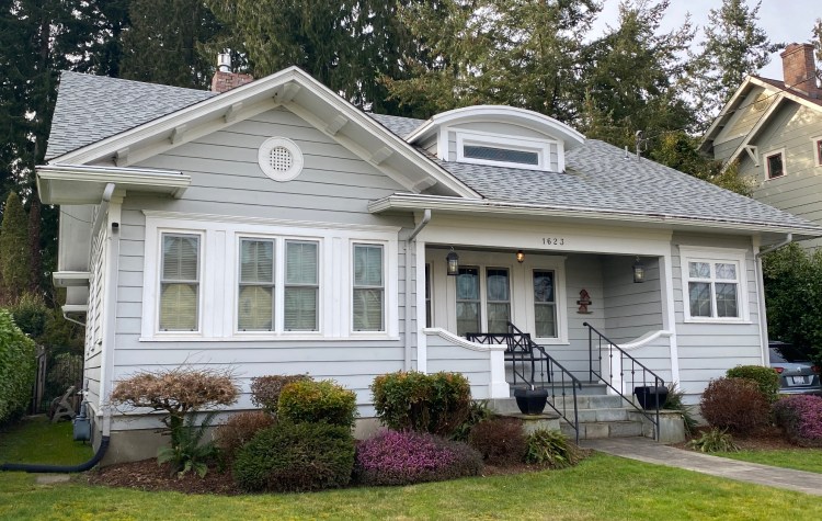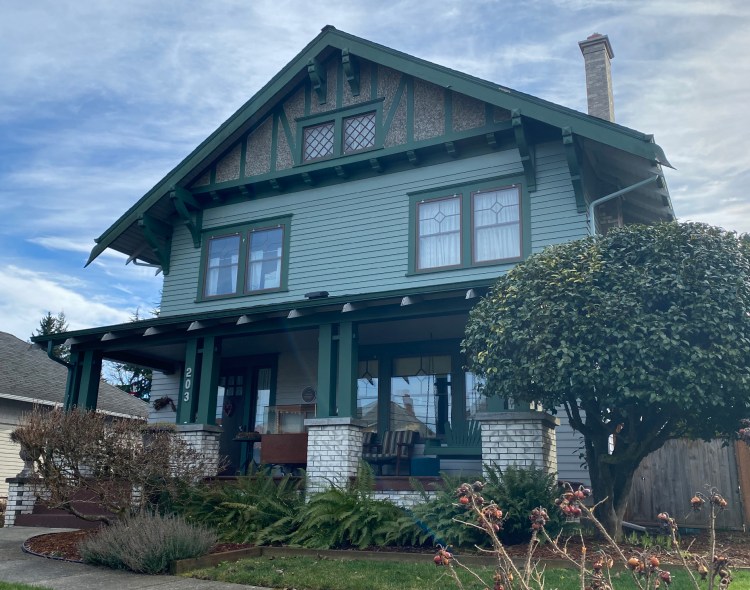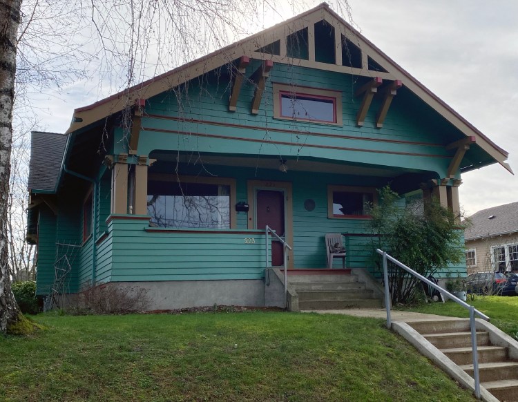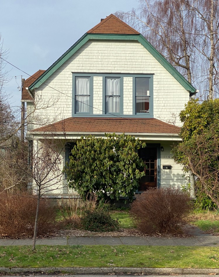 The 3rd second story window on the front was added sometime between 1936 and 1997, creating an unfortunate imbalance not original to the home. Nowadays, a review by the Olympia Heritage Commission is required for exterior changes to homes in the neighborhood.